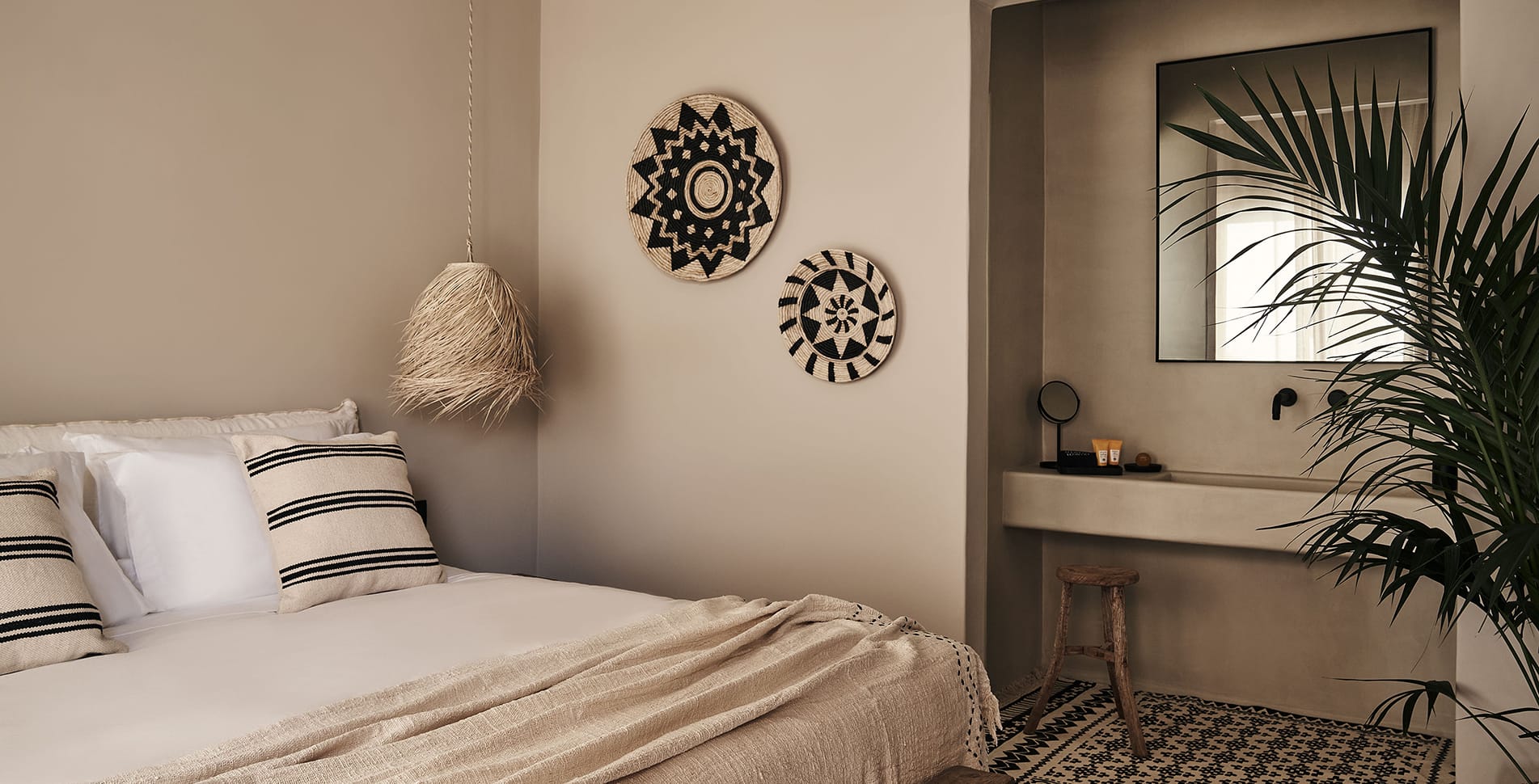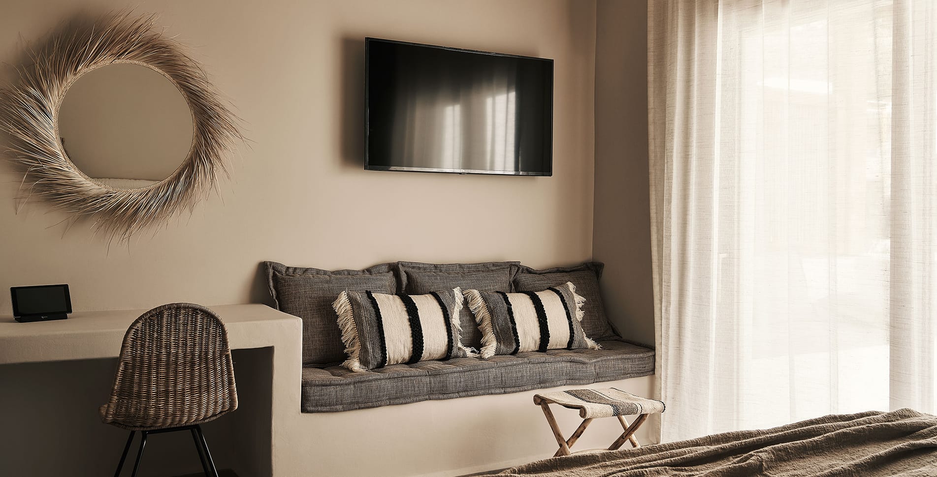 Step into the Helios Suite and let the warmth of Mykonos embrace you. Named after the Sun, this refined hideaway invites you to slow down, breathe deeply, and surrender to island serenity.